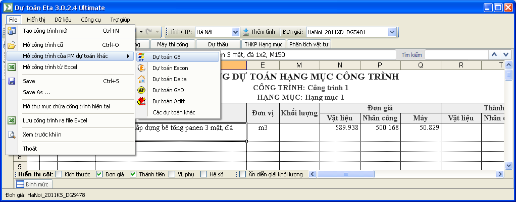 Phần mềm Dự toán Eta là phần mềm sở hữu nhiều tính năng dự toán ưu việt sử dụng các công chức chuẩn của Excel, mang tới cho người dùng đầy đủ các tính năng như dự toán, quyết toán, đấu thầu, kiểm tra, thẩm định tiến độ thi công...